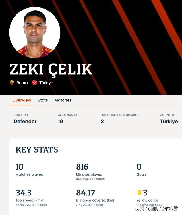 这里的速度,是取自欧足联官方的权威统计,切利克在欧联杯赛事里最高时速达到34.3公里/小时。