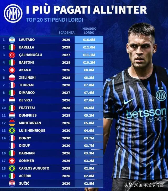 据首都媒体介绍,罗马队给他提供的续约合同是税后240万欧元,球员经纪人索要400万欧元,所以双方谈不拢。而国米若想要匹配球员税后400万的高薪诉求,就需要说服橡树资本了,毕竟,这个数字已经比阿切尔比、德弗赖等人如今在国米的年薪更高了。
